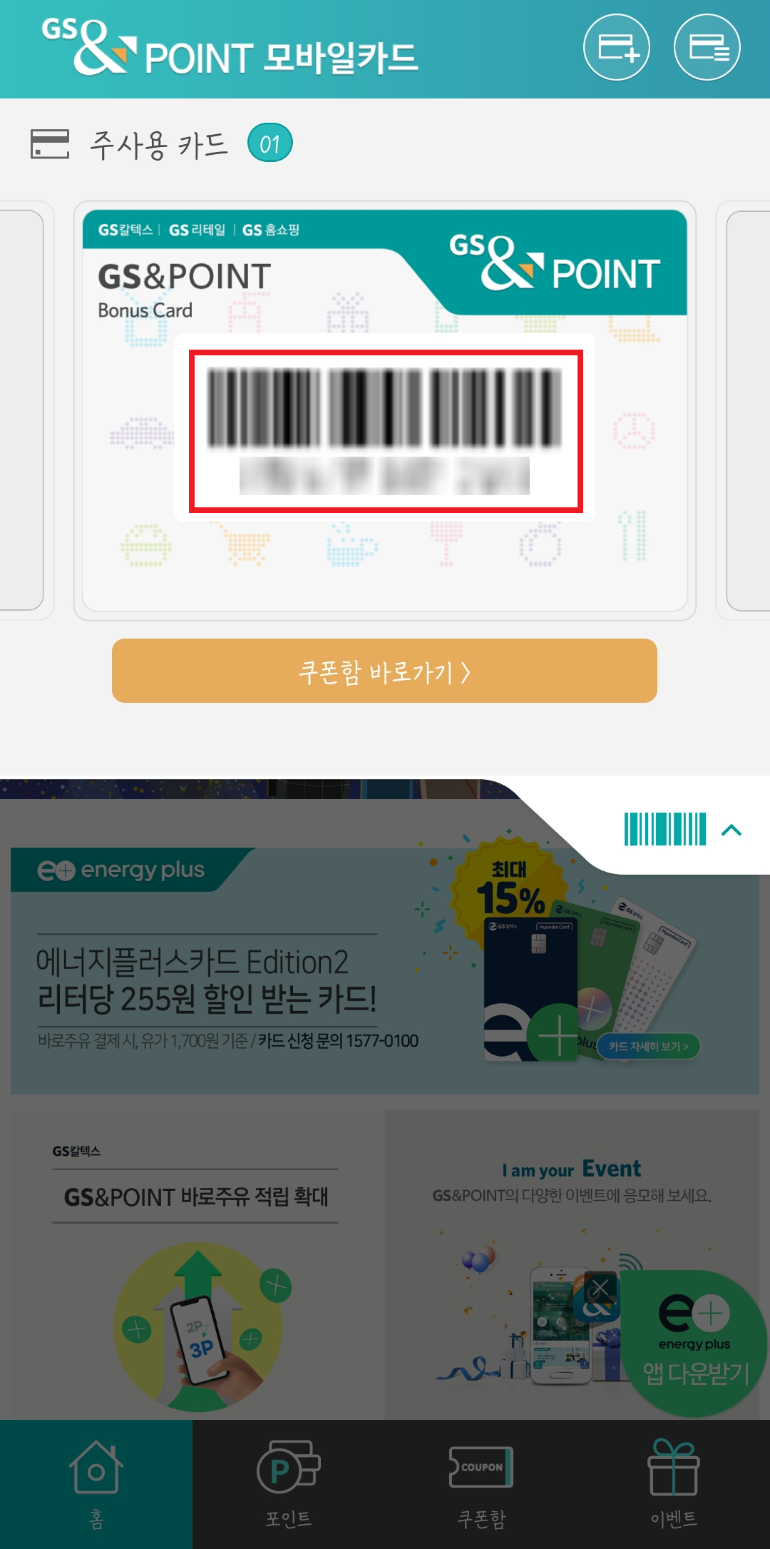 * GS&POINT 모바일 어플에서 실물 오프라인 카드 등록하기 *