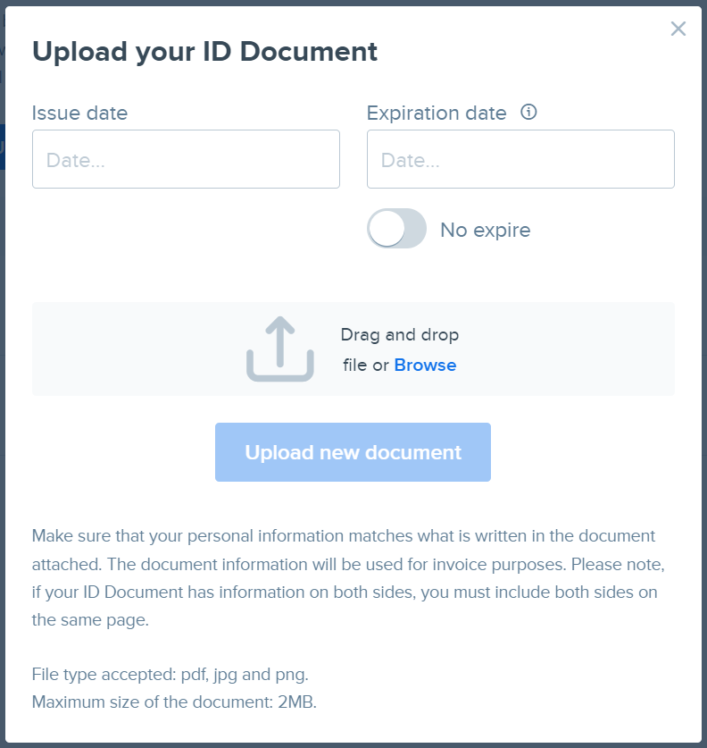 여권 정보를 등록하기 위해서는 Upload ID Document 버튼을,