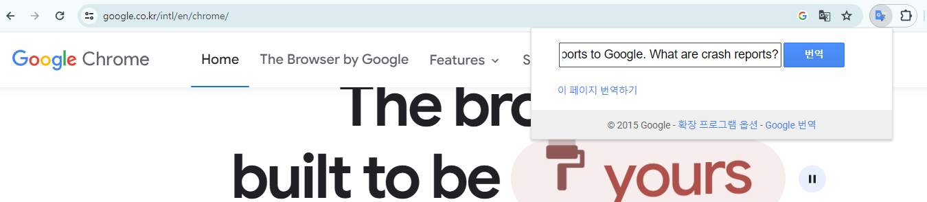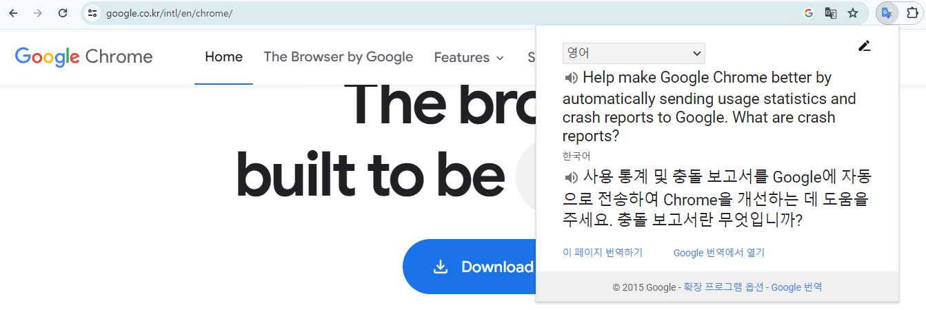 또한 크롬 확장 프로그램인 Google 번역의 경우 전체 페이지 번역이 아닌,