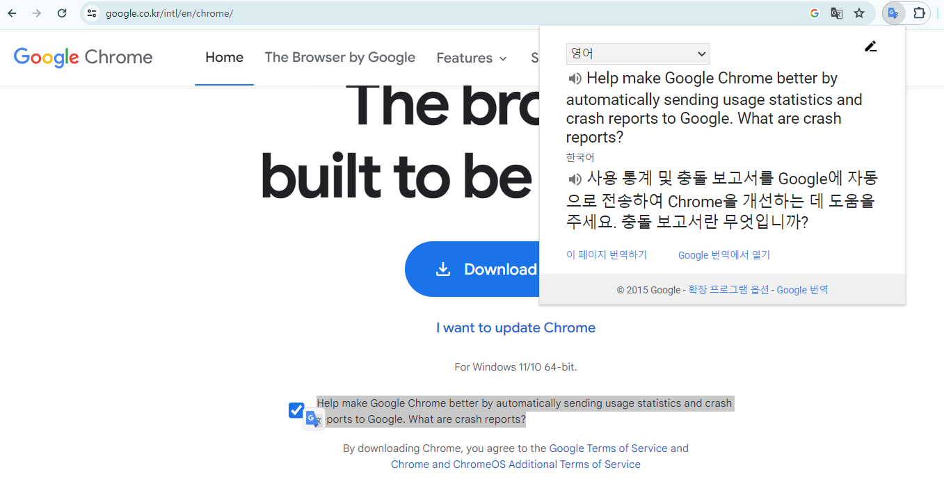 크롬(Chrome) 브라우저 구글 번역 사용하기